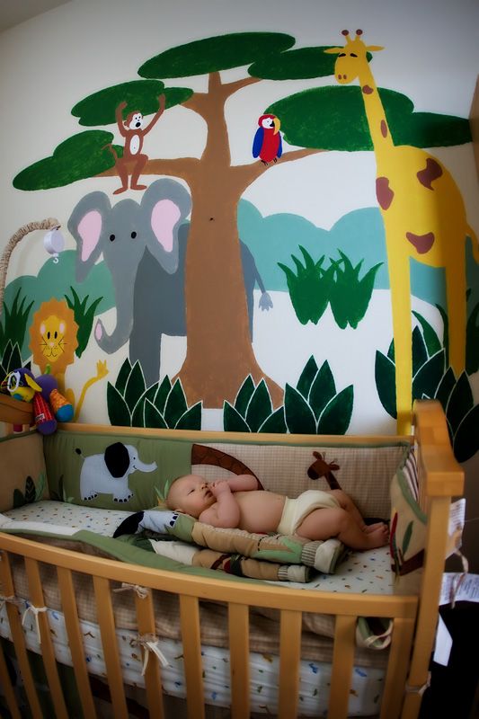 This little 3 month old was full of smiles. And who wouldn't be when he is soo pampered to have a hand painted jungle mural on the wall curtesy of dad? (Dad says it was a "paint by numbers" but I don't think that lessens the amazingness (is that a word?).